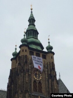 Згодом інша група протестувальників розгорнула на найбільшій споруді Граду – соборі святого Вітта багатометровий банер «Тут сидить маріонетка Путіна». У Празькому Граді традиційно розміщується офіційна резиденція президентів Чехії, господарем якої нині є Мілош Земан.