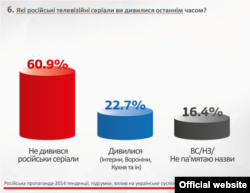 Майже 40% жителів України дивляться російські серіали. Прихильники російських серіалів є в усіх регіонах, і серед чоловіків, і серед жінок, серед людей різного віку та рівня освіти.