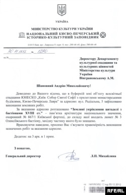 Виникає питання: чи законно було змінено цільове призначення цієї земельної ділянки? В Управлінні охорони культурної спадщини Мінкультури України пояснили, що такі питання вирішуються на рівні парламенту. Але історія таких випадків не знає.