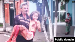 Ще одна світлина на початку ролика не має стосунку до подій в Україні: на ній бачимо військового, який рятує немовля. Вона зроблена у 2010 році: узбецький військовий несе на руках дитину біженців з Оша на киргизько-узбецькому кордоні.