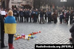 Учасники обох акцій запалили свічки на Вацлавській площі Праги, де 20-річний Палах підпалив себе 46 років тому.