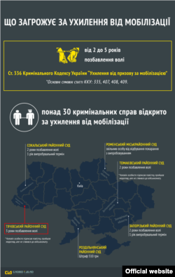 До речі, за ухиляння від мобілізації український закон передбачає від двох до п'яти років ув'язнення. Нині, за інформацією ГО «Слово і діло», відкрито вже понад три десятки кримінальних справ.