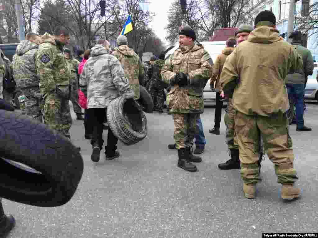 Другого лютого люди у військовій формі, які називають себе бійцями батальйону «Айдар», пікетували Міноборони і палили шини.