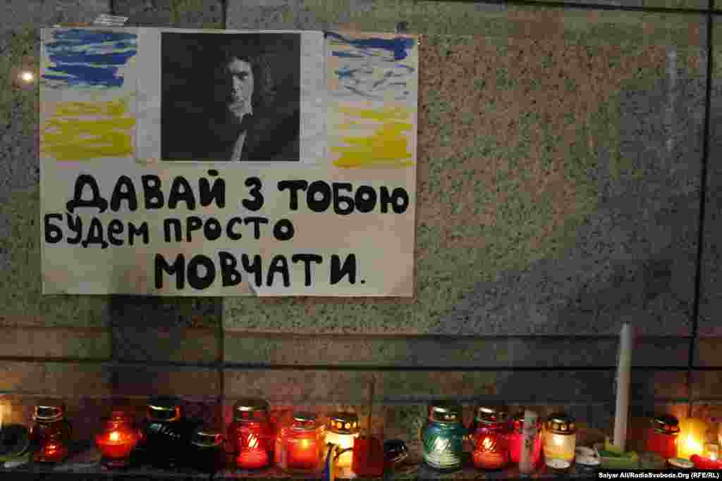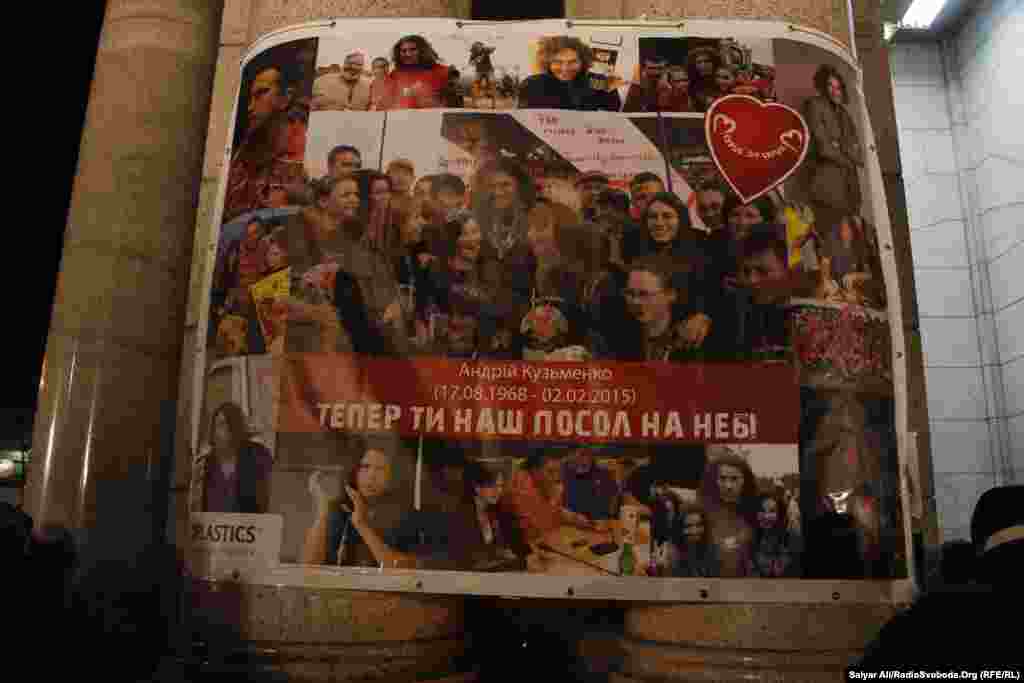 На майдані Незалежності вшанували пам’ять лідера гурту «Скрябін» Андрія Кузьменка. 46-річний співак загинув у ДТП на Дніпропетровщині. Білий автомобіль Toyota Sequoia, за кермом якого перебував Андрій, о 8:20 врізався у молоковоз. Співак загинув на місці.