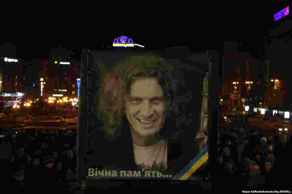 На майдані Незалежності вшанували пам’ять лідера гурту «Скрябін» Андрія Кузьменка. 46-річний співак загинув у ДТП на Дніпропетровщині. Білий автомобіль Toyota Sequoia, за кермом якого перебував Андрій, о 8:20 врізався у молоковоз. Співак загинув на місці.