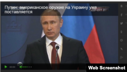 «Говорячи про можливі постачання зброї Заходом Україні, Володимир Путін заявив, що американське озброєння вже туди постачається: «Що стосується можливих поставок в Україну, по-перше, за нашими даними, цю зброю вже постачають. І тут немає нічого незвичайного. По-друге, я глибоко переконаний в тому, що хто б і яку б зброю не поставляв, кількість жертв може, звичайно, збільшитися, але результат буде такий же, як сьогодні», – повідомили на каналі «НТВ».