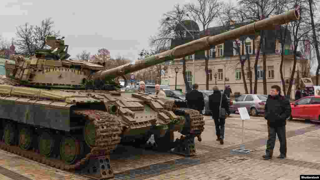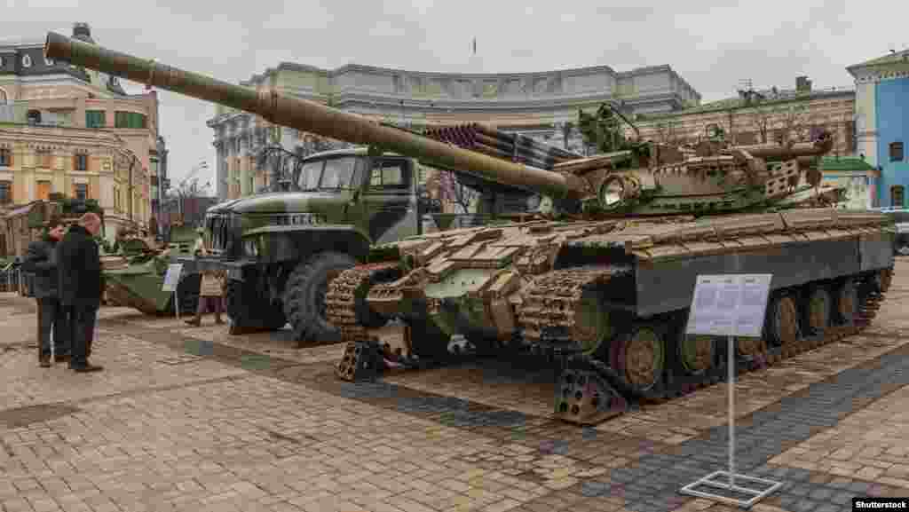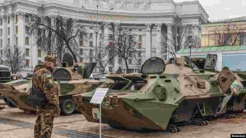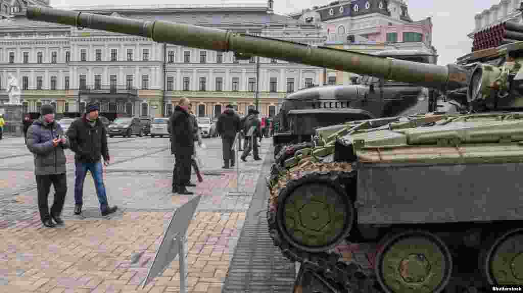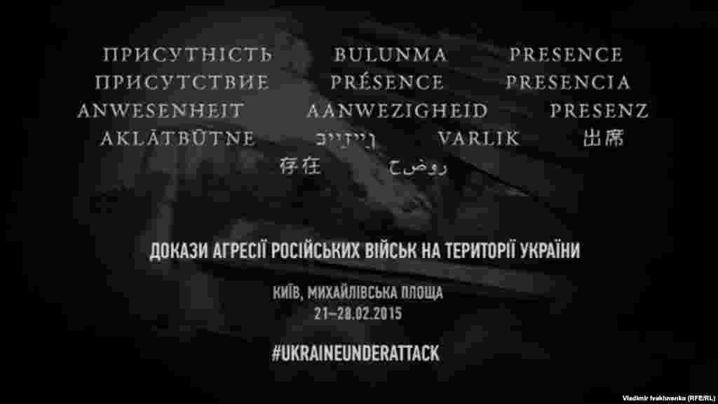 У Києві протягом 21–28 лютого на Михайлівській площі триватиме виставка «Присутність. Докази агресії російських військ на території України». В експозиції трофейна зброя – зокрема, зразки важкої техніки, безпілотники, залишки боєприпасів, а також документи, одяг, докази інформаційної війни, фото- та відеодокументи.