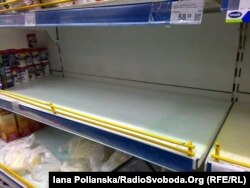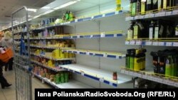 У супермаркетах помітне пожвавлення: українці змітають з полиць так звані «соціальні товари» тривалого зберігання. На місці олії, борошна, круп та макаронів – порожні полиці. Працівники час від часу завозять новий товар. Утім, коли ставити вже немає чого, просто заставляють тим, що у надлишку: водою чи цукерками.