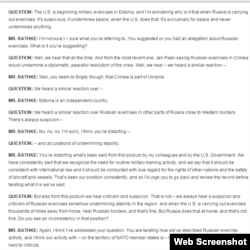 Сьогодні російський телеканал «Звезда» продемонстрував шматок відеозапису щоденного брифінгу держдепартаменту США. Відповідав на запитання цього разу Джефф Ратке, який замінив Джен Псакі. На брифінгу пролунало запитання від кореспондентки Russia Today, про те, чи не «підривають мир» військові навчання США в Естонії.