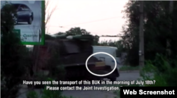 У цьому ж сюжеті згадують і про тягач із установкою «Бук». У міжнародної слідчої групи, до якої входять фахівці з Австралії, Бельгії, Малайзії, Нідерландів та України, є фото і відеодокази присутності установки «Бук» та тягача марки Volvo на сході Україні, однак у відеоролику ще раз закликають всіх, хто міг бачити пересування зенітної установки, звернутись до комісії.