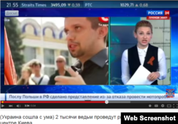 «Нацистська спадщина предків напрошується як аналогія. Україна йде стопами третього рейху? Йде, ще як іде… семимильними кроками, немов бояться запізнитися. Тільки куди? На Нюрнберзький процес? У четвер 30 числа о четвертій з чвертю 24 сотні магів, відьом і екстрасенсів прийдуть молитися про кінець війни, дуже дивно», – розповіли репортери телеканалу «Россия-24».