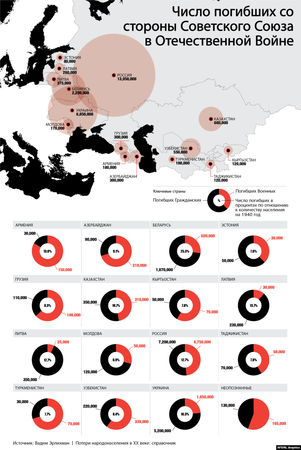За даними: Вадим Ерліхман «Потери народонаселения в ХХ веке: справочник»