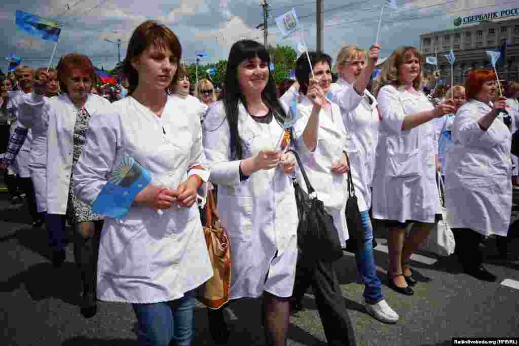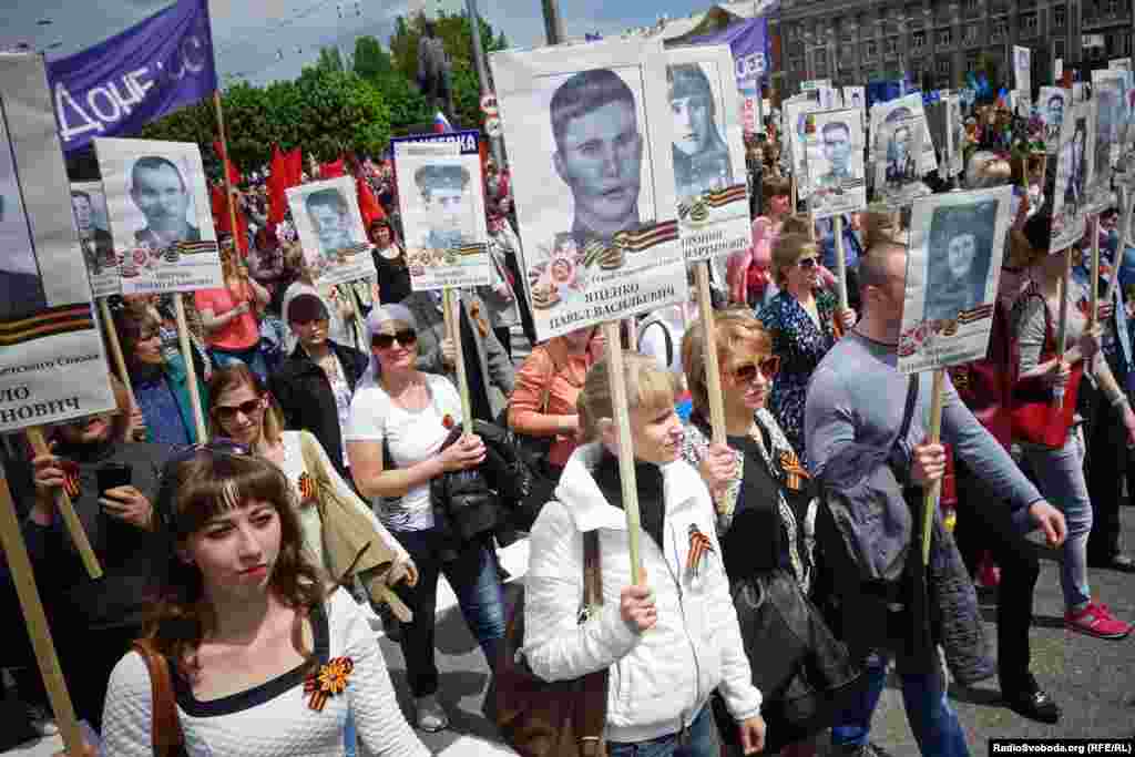 У Донецьку 11 травня провели ходу до річниці так званого «референдуму», проведеного рік тому в частині захоплених проросійськими бойовиками і російськими спецпідрозділами міст Донецької і Луганської областей. Оголошені «результати» цього «опитування», так би мовити, «оформили» контроль бойовиків угруповань «ДНР» і «ЛНР» над частиною Донбасу. Як повідомляють з окупованої території, керівництво угруповання «ДНР», що визнане в Україні терористичним, змушувало підприємства відправляти людей на нинішню акцію.