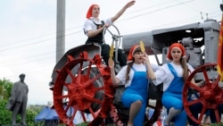 На кольоровий парад з трибуни дивиться ватажок «ДНР» Олександр Захарченко. В цей час перед ним по Артема проходять чи проїжджають байкери, боксери, велосипедисти, дзюдоїсти, хлібороби, шахтарі.