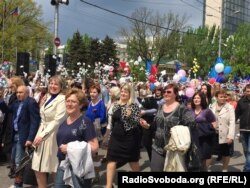 Головною вулицею Донецька – вулицею Артема – пройшов марш, на який людей з інших підконтрольних бойовиками міст області привезли спеціально підготовані автобуси. Однак, значна частина з них не виглядала так, наче бере участь у марші з примусу: люди йшли вулицею Артема і тішилися, підносили руки, в яких тримали прапори «ДНР» або Росії, дехто ніс білі чи голубі квіти. Ці люди значно відрізнялися від тих, кого можна було побачити понад рік тому на київському «антимайдані», де по обличчях учасників було видно, що вони лиш чекають на момент, коли вже можна буде отримати свої гроші і спокійно повернутися додому. У Донецьку 11 травня на кожне «Слава жителям Донбасу» лунало голосне: «Ура!», і тільки деякі справляли враження, що їм соромно, й намагалися приховати «георгіївську стрічку».