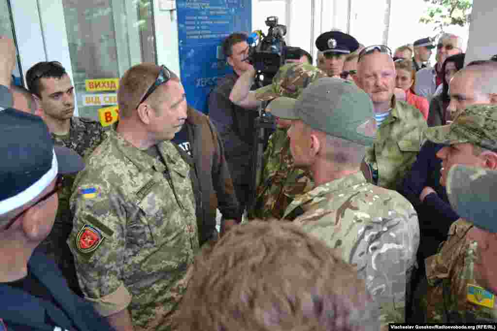 Активісти херсонського Євромайдану пікетували Херсонську міську раду, заявляючи, що міська влада, по суті, схвалила проведення під час урочистостей на честь 70-річчя перемоги 9 травня ходи та інших масових заходів, організованих представниками Компартії і «Опозиційного блоку». Євромайданівці принесли для міської влади «презент» – гарбуз, прикрашений георгіївськими стрічками, знятими 9 травня активістами з проросійськи налаштованих херсонців. Вони також прикотили до будівлі міськради атрибут «народної люстрації» – сміттєвий контейнер.