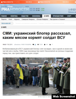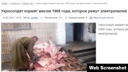 17 травня на сайті «РИА-новости» повідомили: «Мобілізований в ЗСУ український блогер зняв на відео, як в одній із військових частин м’ясо нібито 1968 року виробництва пиляють бензопилою на брудних піддонах перед тим, як приготувати його для солдатів».