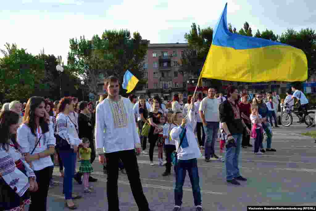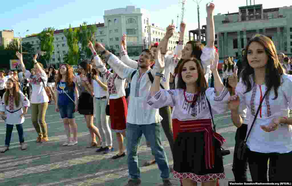 Близько тисячі херсонців узяли участь у флешмобі, який пройшов за ініціативою Студентської ради при міському голові з нагоди Дня вишиванки. У центрі Херсона, на площі Свободи, одягнені у вишиванки мешканці міста зробили живу карту України: стали, відтворивши контури країни.