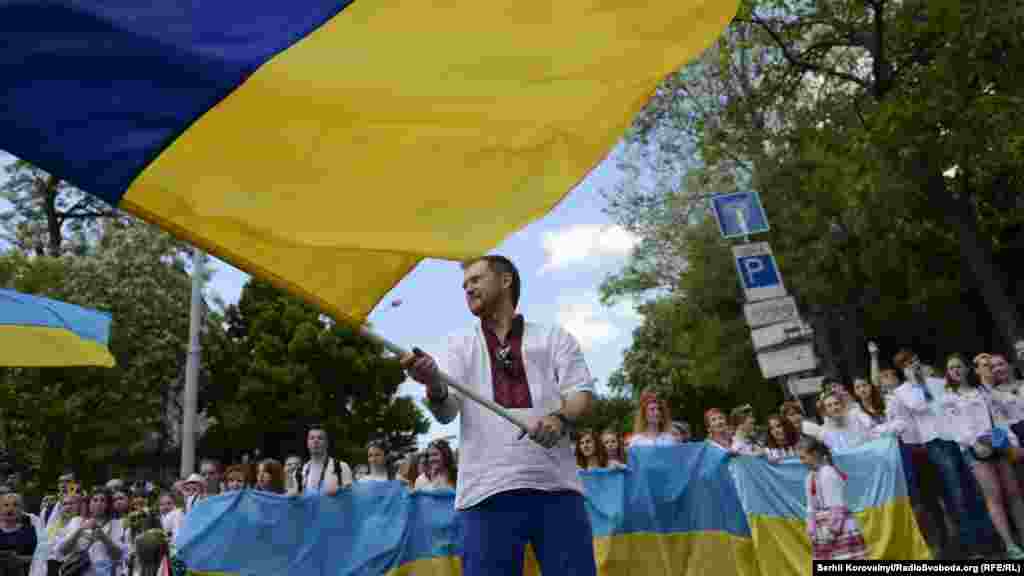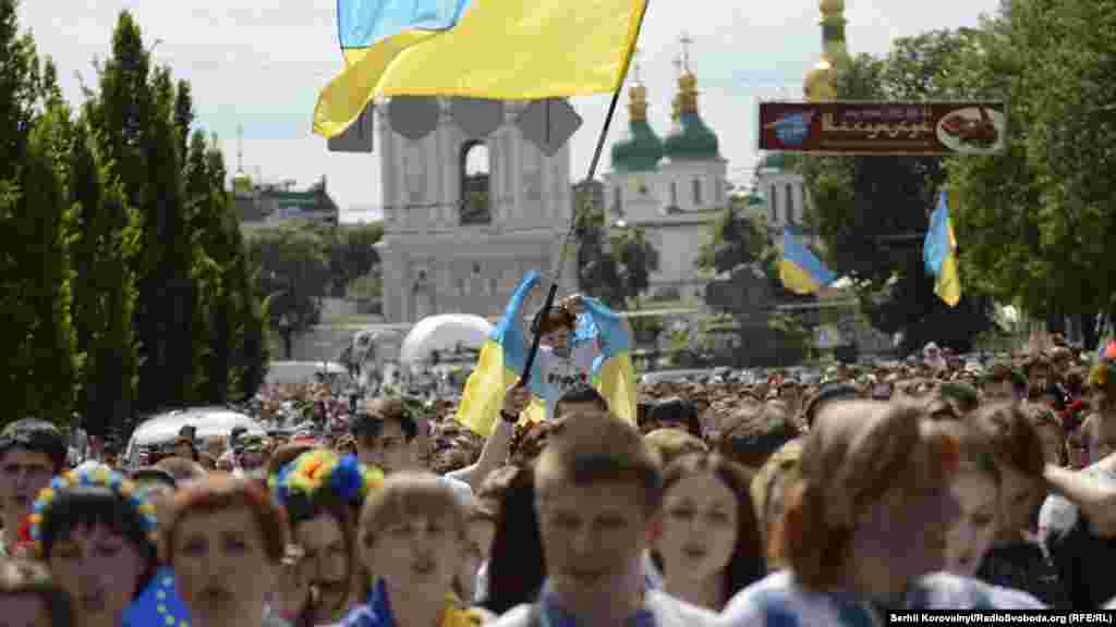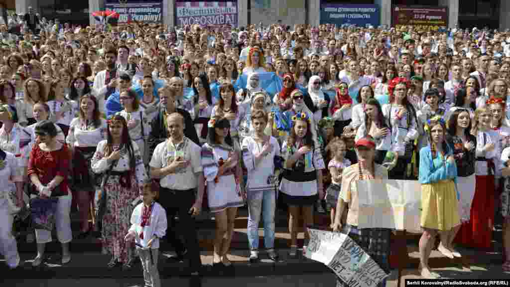 У неділю, 24 травня, у Києві відбувся вже традиційний 15-й Мегамарш у вишиванках. Кияни у національних сорочках зібрались біля Золотих Воріт і, після короткого відкриття, вирушили ходою через Софіївську та Махайлівську площу до арки Дружби народів.