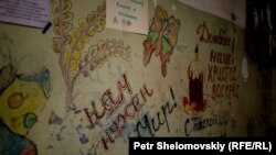 А поки звуки падаючих снарядів ще доносяться з вулиці, діти розмальовують стіни свого тимчасового житла написами, що закликають до миру.