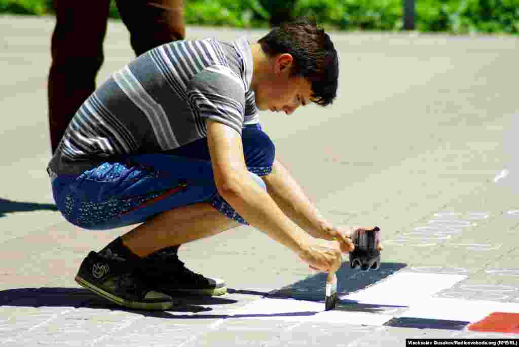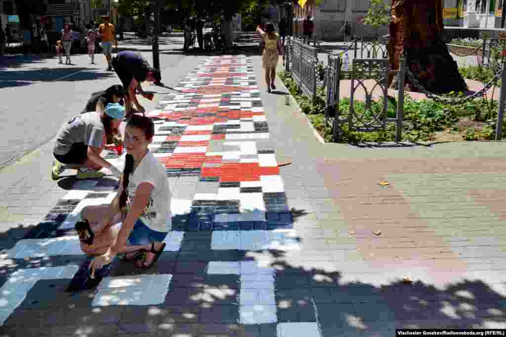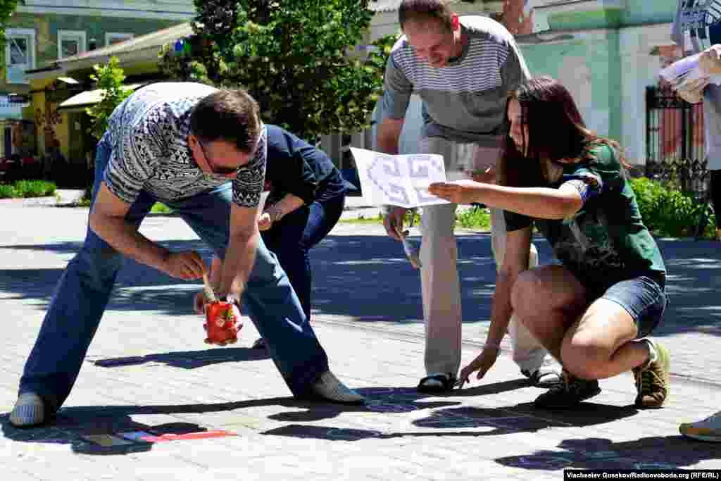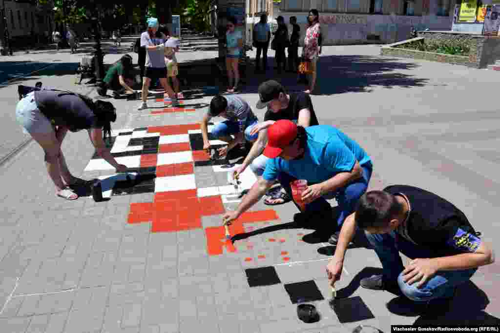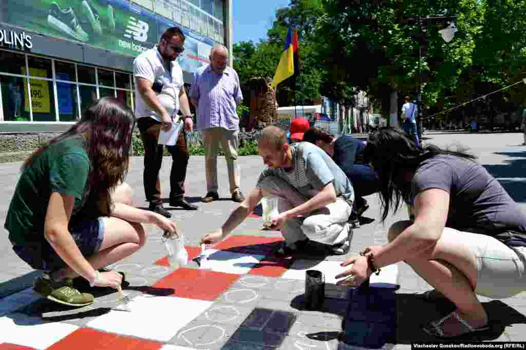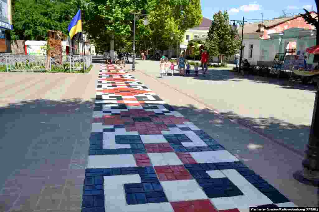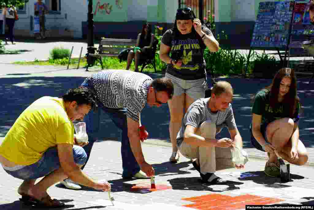 Представники кількох громадських та політичних організацій, пересічні містяни розмалювали візерунком з української вишиванки частину тротуару на цій вулиці. У акції взяли участь також представники міської влади, депутати, громадські діячі.