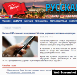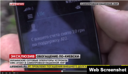 Російський телеканал LifeNews випустив сюжет із заголовком «Збагачення по-київськи», в якому стверджується нібито українські оператори мобільного зв’язку знімають кошти з рахунків мобільних телефонів мешканців окупованих території на підтримку антитерористичної операції на Донбасі, а також влаштовують «СМС-атаки», повідомили журналісти українського порталу Stopfake.org.