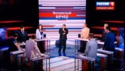І ось на російському телебаченні вже безупинно говорять про змову, змову, змову проти Росії. І ця теорія змови набуває дивних обрисів, каже Пітер Померанцев: «Чому Америка штовхає нас до війни з Україною?» От така матрьошка, складена зі змов, головна ідея якої – що хтось штовхає Росію до війни з Україною».