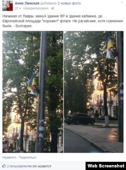 Однак, пізніше користувачі соцмереж розмістили фотографії прапорів, розвішаних вздовж вулиці Лаврська, які були зроблені вдень.