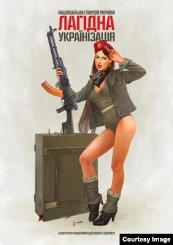 Всі постери мають іронічно-саркастичний характер. А лагідна, бо героями плакатів є жінки, хоч вони і з кулеметами. Це сексапільні дівчата зі зброєю