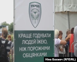 А тим часом черги біля наметів з символікою «Укроп», де чернігівцям видають пакети з продуктами, набирають загрозливих масштабів. Фактично біля кожного такого пункту з роздачі «гречки» щодня збираються сотні місцевих мешканців. Люди з ночі займають чергу.