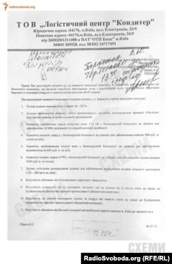 У листі директор фірми Костянтин Півень просить мера розглянути питання щодо наявності у місті земельної ділянки для будівництва бісквітного комплексу площею 16-20 гектарів з очисними спорудами для 500 кубометрів стоків на добу, зі зручним логістичним розташуванням та з «чистим» відчуженням земельної ділянки.