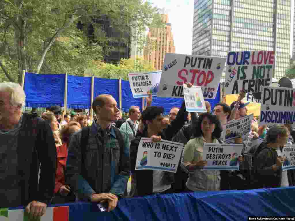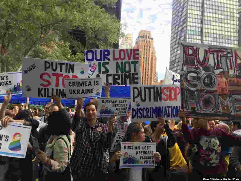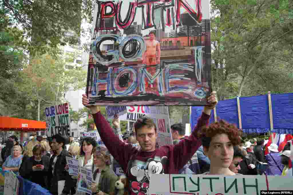 До приїзду президента Росії Володимира Путіна в Нью-Йорк для участі в Генеральній асамблеї ООН і зустрічі з Бараком Обамою приурочені акції протесту проти нинішньої політики Кремля, насамперед щодо України