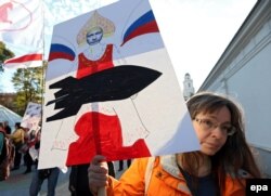 У Мінську відбулася акція протесту проти розміщення на території Білорусі військової бази російських збройних сил. За повідомленням Білоруської редакції Радіо Свобода, у неділю, 4 жовтня, близько півтисячі людей з плакатами, біло-червоно-білими національними прапорами та знаменами Євросоюзу вийшли на вулиці столиці країни.