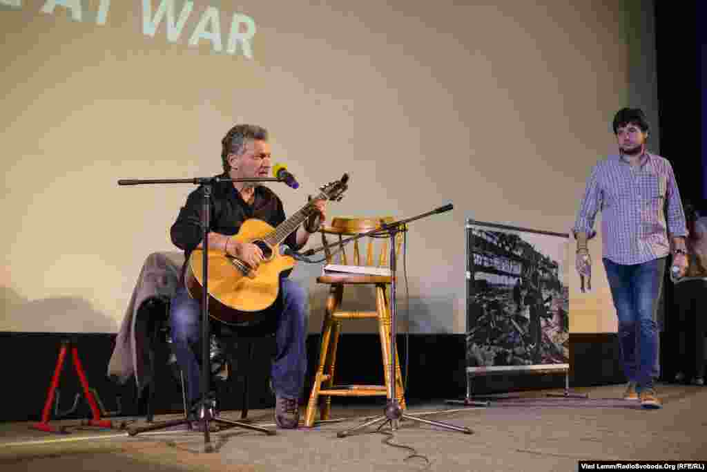 Олексій Горбунов читає уривок з роману під акомпанемент Сергія Лойка