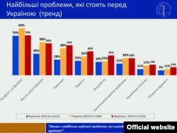 Занепокоєння бідністю послідовно зростає: якщо у вересні 2014 року це вважали серйозною проблемою 25%, то зараз – 42% українців. Разом із цим, кожен третій (35%) вимагає розібратись із безробіттям, а зовнішній борг держави турбує кожного десятого (11%).