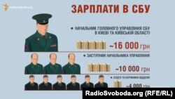 Начальник Головного управління СБУ Києва та Київської області Михайло Глуговський заробляє 16 тисяч гривень на місяць. Заступник начальника управління – близько 10 тисяч гривень.