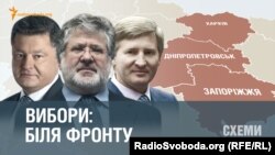 Місцеві вибори у регіонах, які межують з війною, сьогодні мають значення, як ніколи. Від їхніх результатів залежатиме, куди рухатиметься схід України. Тому журналіст програми «Схеми» (спільний проект Радіо Свобода і UA:Першого каналу) вирішив подивитися, хто є головними фаворитами в боротьбі за владу у прифронтових регіонах, і побував у Харкові, Дніпропетровську, Запоріжжі та Маріуполі. І з’ясував, що при всьому розмаїтті політичних сил у країні шанси на серйозну владу там мають тільки фактично три політично-олігархічні сили.