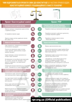 Європейські експерти вважають, що остання версія змін до Конституції в частині правосуддя є добре підготовленою і заслуговує підтримки. Зокрема, Венеціанська комісія привітала декілька ключових пропозицій Конституційної комісії, серед яких: закріпити у Основному законі проведення прозорого конкурсу на посаду суддів, скасувати їм випробувальний термін на 5 років, а формування Вищої ради правосуддя (наразі ще юстиції – ред.) організувати так, щоб її більшість складали судді, обрані іншими суддями. Крім того, важливо, що комісія наголосила на необхідності усунути політичний вплив президента і Верховної Ради. В той же час, в питанні остаточного звільнення, комісія стала на захист служителів Феміди.
