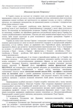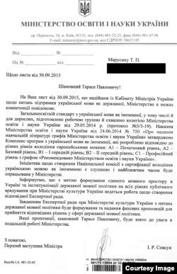 Звернення до Арсенія Яценюка називалося «Про створення Державної навчально-екзаменаційної системи «Український мовний диплом», а з відповіді МОН, яке «діє в межах компетенції», випливає, що зазначене звернення торкалося питань підтримки української мови як державної. І це не перша маніпуляція. Далі йде пояснення про те, що колегією Міністерства освіти й науки схвалено загальноосвітній стандарт з української мови як іноземної, затверджено Комплекс програм із української мови як іноземної. Далі процитую: «Ініціатива щодо створення Національної комісії з сертифікації володіння українською мовою як іноземною є слушною і найближчим часом буде опрацьована у Міністерстві». Але ж у зверненні – жодного слова про таку ініціативу.