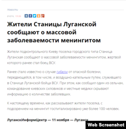 Цими днями на деяких інтернет-порталах та сепаратистських ЗМІ вийшли публікації з заголовками: «У Станиці Луганській повідомляють про масову епідемію менінгіту», «Жителі Станиці Луганської повідомляють про масову захворюваність на менінгіт», «Ситуація з менінгітом у карателів загострюється – заражені вже 100 осіб».