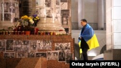 На Інститутській увечері не бракувало світла. Втім, справа зовсім не в ліхтарях – вулиця горіла вогниками сотень лампадок, які приносили кияни до меморіалу Небесної сотні. Мовчазні люди поволі піднімалися вгору вулицею й розглядали портрети загиблих, дехто з них зупинявся й молився, хтось приносив і клав квіти. Блакитно-жовті – сьогодні тут найпопулярніші.