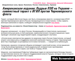 Однак в оригіналі публікації на сайті американського видання Vice News про «спланований теракт з «Ісламською державою» нічого не сказано. А про Чорноморський флот і місто Севастополь згадується лише в одному абзаці.