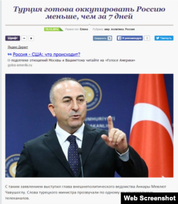 «Якщо буде необхідно, я запевняю вас: ми з НАТО і нашими регіональними союзниками можемо окупувати Росію менше, ніж за сім днів» – подаючи таку нібито «цитату» керівника МЗС Туреччини, рсійські ЗМІ послались на портал YourNewsWire.