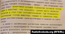 «Виявлено велику кількість останків трупів людей і тварин. Як виявилося, дане місце є закритим в 1960 році скотомогильником, де проводилося поховання тварин, померлих від сибірської язви». Постановили – роботи з діставання людських останків припинити, місце забетонувати.