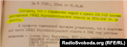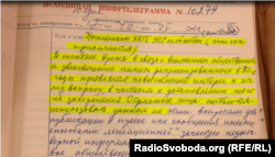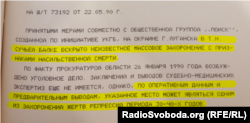 «Цілком таємно. Директива начальникам УКДБ УРСР. У зв'язку з увагою громадськості до увічнення пам'яті репресованих в 30-і роки проявляється підвищений інтерес до встановлення місць їхнього поховання. Окремі особи намагаються використовувати дані для публікацій у пресі. Необхідно відстежувати подібні явища, вживати відповідних заходів».