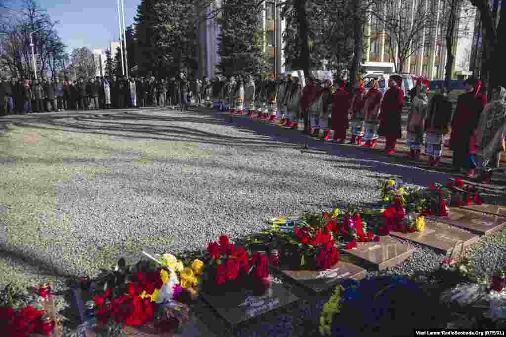Квіти до пам’ятного знаку поклали керівники області та міста, громадські активісти, представники духовенства та небайдужі мешканці міста. Ввечері цього для на площі Героїв Майдану проходила акція «Герої не вмирають», у рамках якої відбулося вогняне дійство.