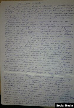 Однак на публічній сторінці Надії Савченко у фейсбуці увечері в четвер з’явився текст її «Останнього слова», який був підготовлений до початку сухого голодування. До посту також прикріплені фотографії рукопису з промовою.