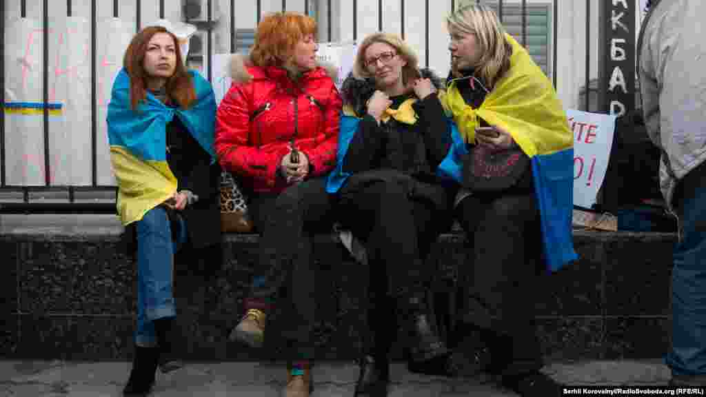 Під посольством Росії вже зібралося кілька сотень людей. Багато хто прийшов сюди ходою з майдану Незалежності