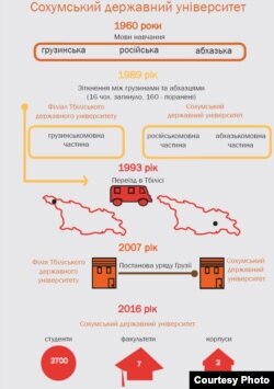 У Грузії через збройний конфлікт з Абхазії був вимушений виїхати Сухумський державний університет. Вже більше двадцяти років виш працює в Тбілісі на вулиці, названій на честь Ганни Політковської, російської журналістки, яка відкрито критикувала діяльність Володимира Путіна і була вбита у 2006 році.