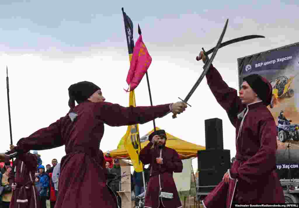 Також організатори свята зробили подарунок для присутніх на ньому вихованців Херсонського дитячого притулку: спортсмени покатали їх на квадроциклах. А майстри козацьких бойових мистецтв провели майстер-класи для усіх охочих.